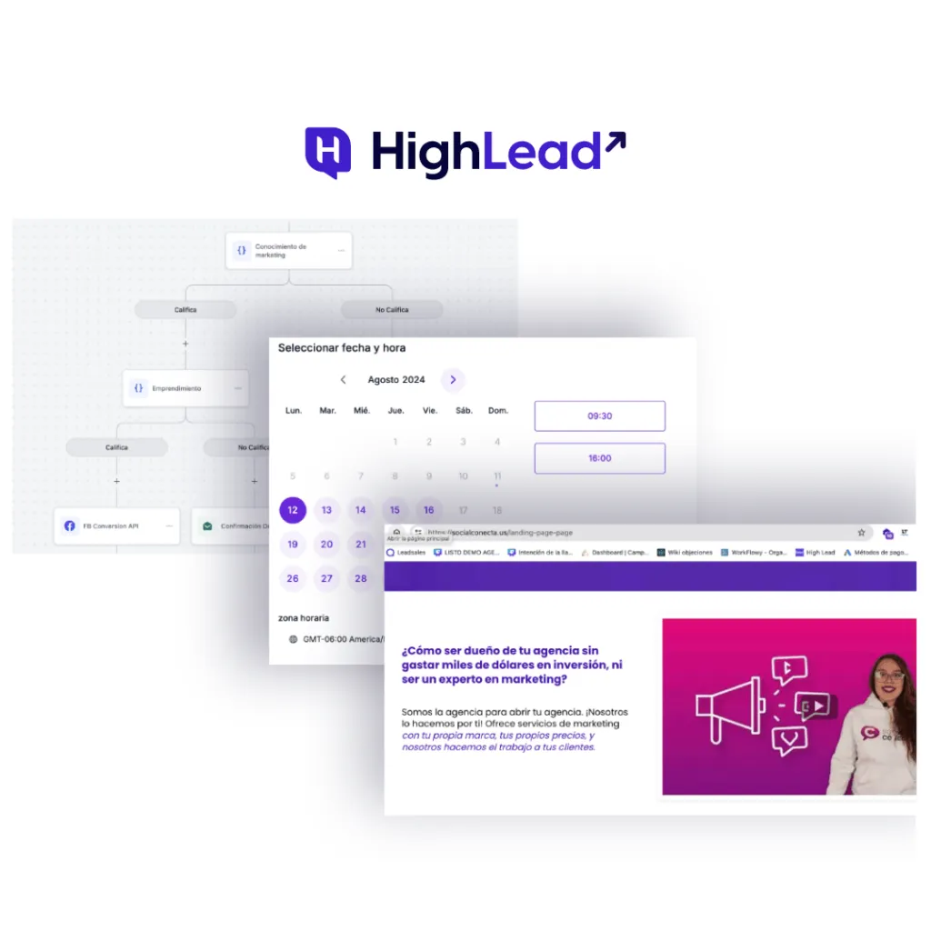 Nota: Pago único para la configuración del embudo y dejarlo funcionando, *No incluye el pago de la plataforma de High Lead para elaborar toda la automatización.